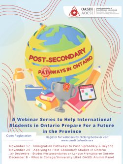 This event is part of a series of webinars presented by OASDI to help international students in Ontario prepare for a future in the Province.